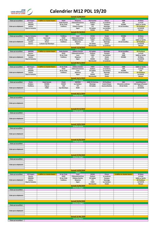 Calendrier Matchs et Journées Atelier U12