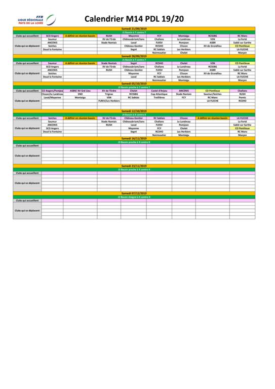 Calendrier Matchs et Journées Atelier U14
