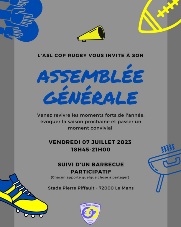Vendredi 07 juillet a eu lieu l'Assemblée Générale de l'ASL COP rugby 2023. L'occasion de revenir sur la saison 2022-2023 : équipes, temps forts, actions, rapport financier... mais aussi évoquer la saison prochaine.