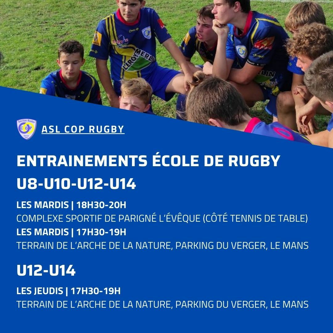 A partir de janvier 2025, l'école de rugby change de créneaux d'entrainements !